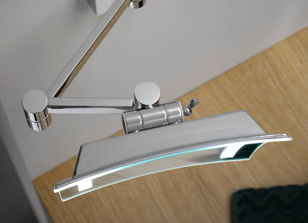 Die Möglichkeiten Spiegel und Licht reizvoll einzusetzen, reichen von der indirekten Beleuchtung hinter dem Wandspiegel bis zum gezielten Lichtelement an Wand oder Decke. Es kann funktional eingesetzt werden, wie z.B. beim morgendlichen Zurechtmachen am Waschplatz. Es kann aber auch gestalterisch genutzt werden, um Akzente zu setzen oder Räume optisch größer wirken zu lassen.