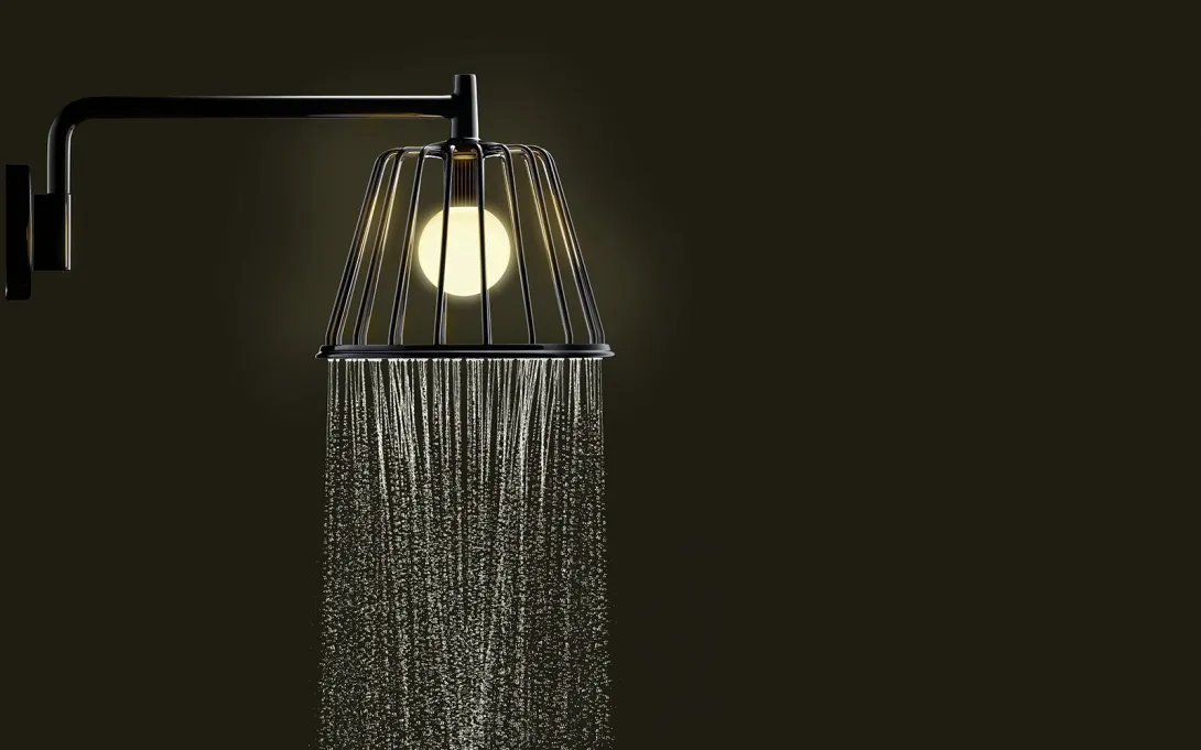 Eine Erweiterung der sinnlichen Wahrnehmung – dafür sorgt die Designkreation des japanischen Büros Nendo. Die Kombination des breiten Regenkranzes mit dem warmen Ambientelicht entschleunigt den Alltag und macht Ihr Badezimmer wohnlicher. Wir beraten Sie gerne zur Wahl der passenden LampShower-Oberfläche für Ihr Badezimmer.