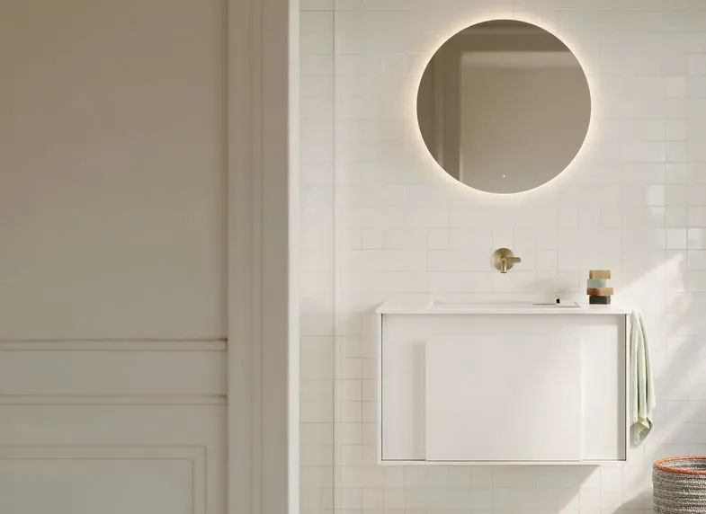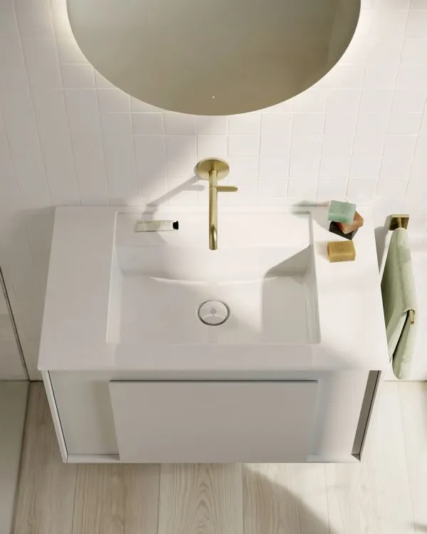 Ob Gäste-WC oder Familienbad – Moto bietet Waschtische in Breiten zwischen etwa 810 bis 1410 mm in Mineralguss oder Keramik. Auch Gäste-Badversionen mit kleineren Maßen sind verfügbar.