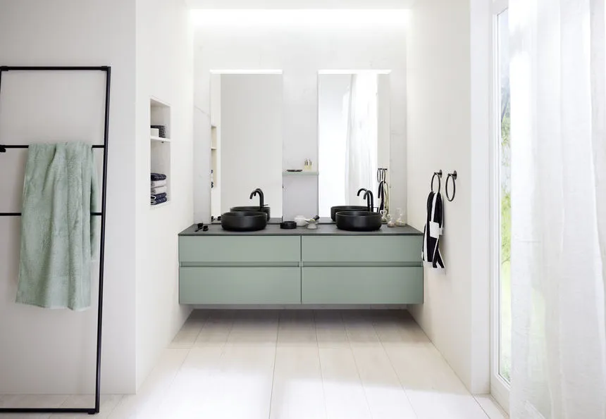 Ihr Waschtisch wird mit sys30 zum individuellen Statement. Sie entscheiden über Form, Farbe und Ausführung – von klassisch bis modern. Zahlreiche Modelle sind als Komplett-Set mit Unterschrank verfügbar, auf Wunsch auch maßflexibel. Ergänzend können Sie sogar Waschtische anderer Marken mit burgbad-Unterschränken kombinieren. Bei den Materialien reicht das Spektrum von Keramik über Glas und Mineralguss bis hin zu HPL, ob als Doppelwaschtisch, Aufsatz- oder Flächenlösung.