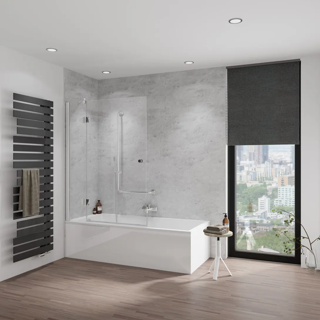 Die schmalen Festelemente sorgen dafür, dass HSK Aperto auch bei schwierigen Raum­situa­tionen wie in der Um­gebung von Heiz­körpern oder anderen Hinder­nissen problemlos geöffnet werden kann. Als pendel­bare Drehtür passt sie perfekt in jede Nische. Aber auch als Walk-in-Lösung, Rund­dusche, Badewannen-Aufsatz oder als Dusche mit verkürzter Seitenwand macht die Aperto eine gute Figur.